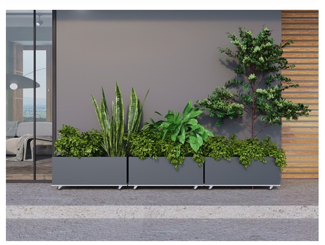 丸い金属製の植木鉢